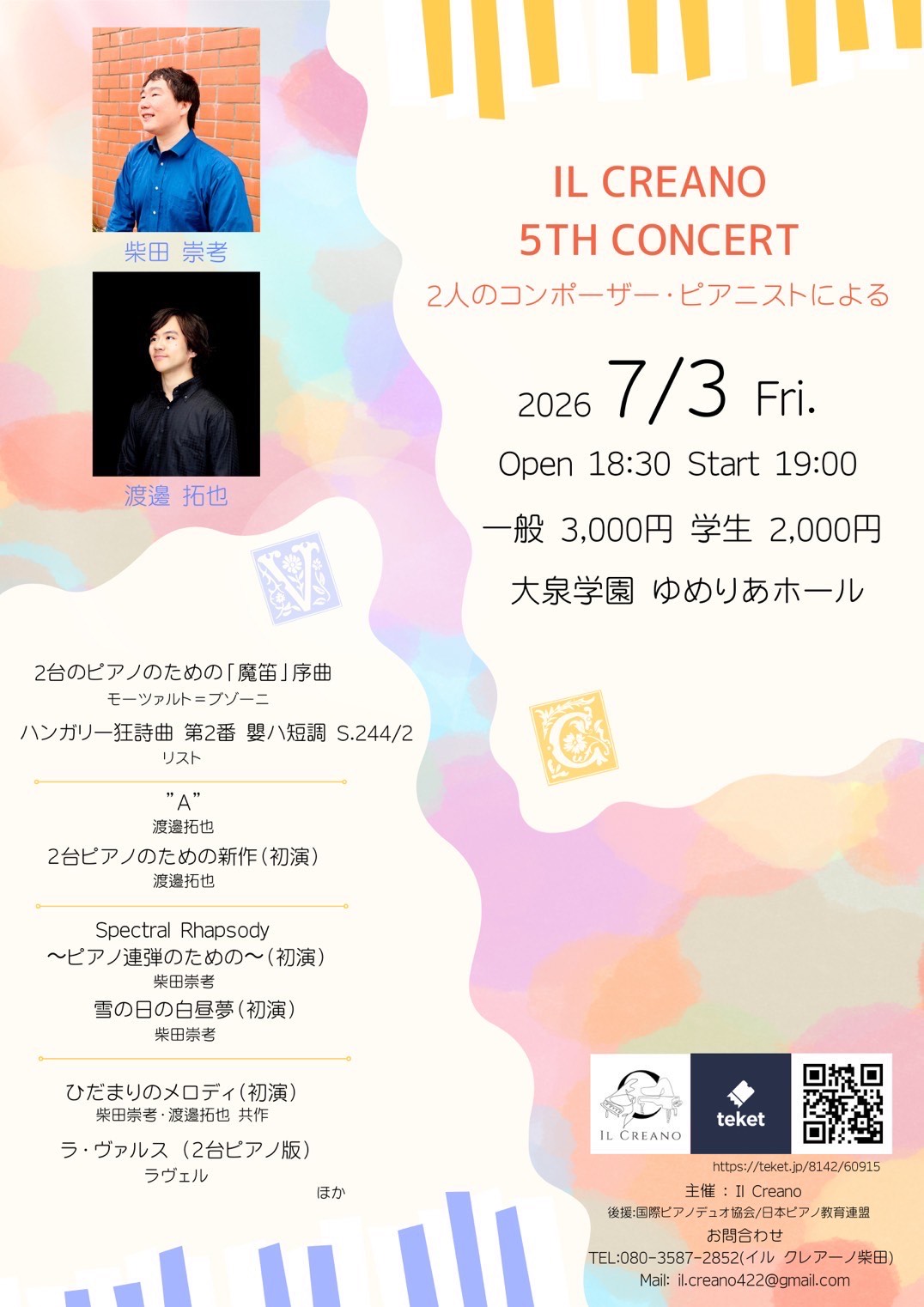 チケット取り扱い・お問合せ:08035872852(柴田)il.creano422@gmail.com