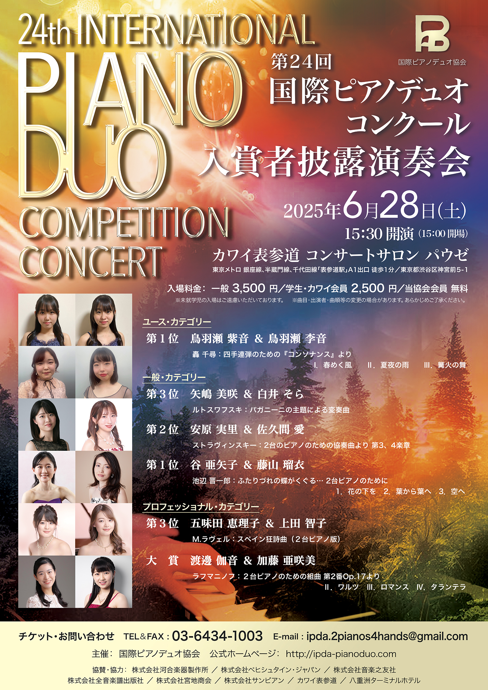 The aim of this contest is to raise the artistic standards of piano duo playing and increase the popularity of this medium by introducing more people to the charms of piano duo performance.