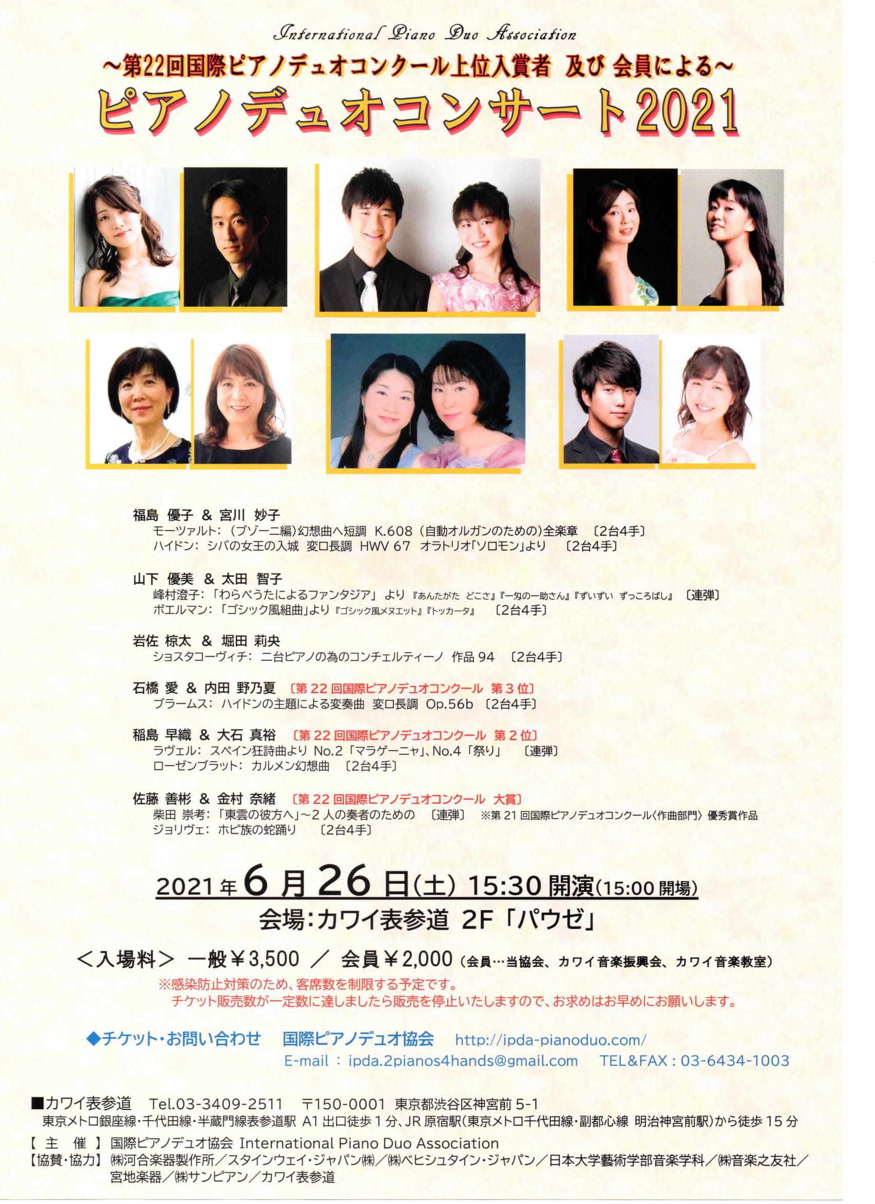 Sat. 26th June 2021 15:30start KAWAI Omotesando (Tokyo)